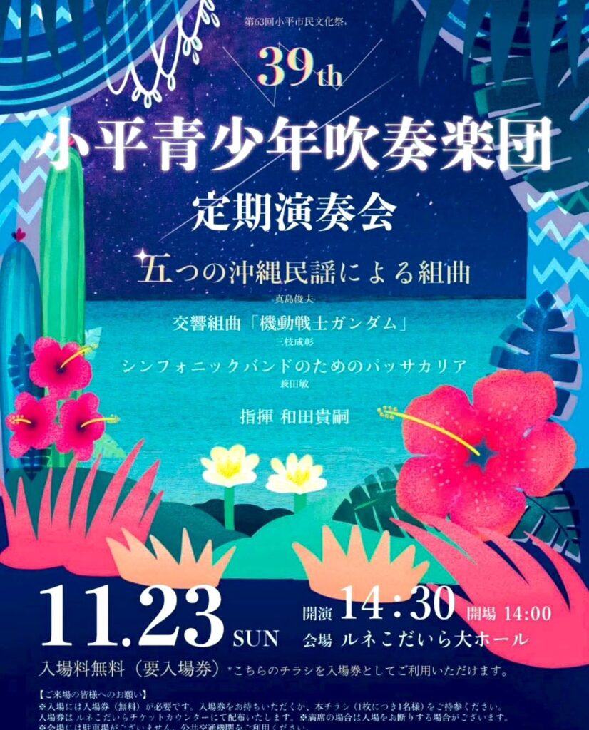 11月23日(日)第63回小平市民文化祭『第39回小平青少年吹奏楽団定期演奏会』を行いました。